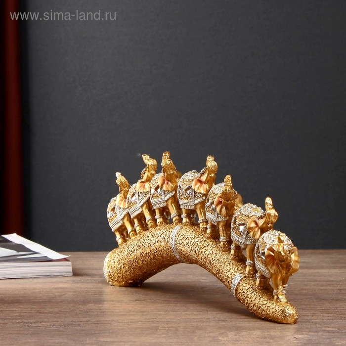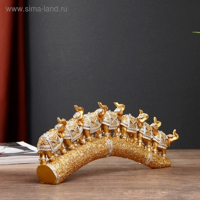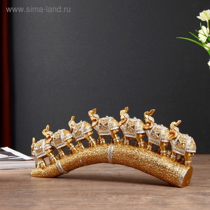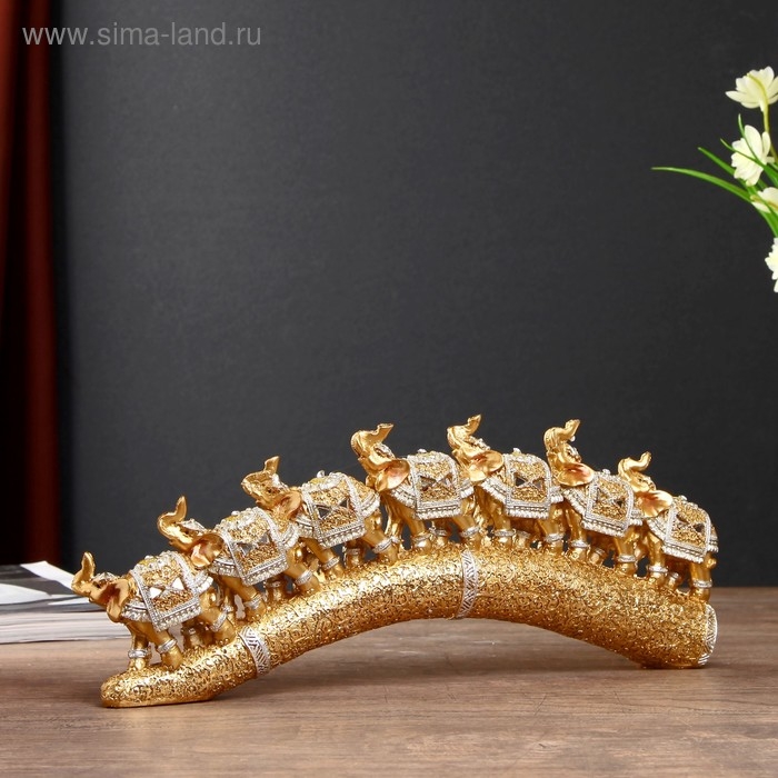 Сувенир полистоун "Семь золотых слонов на золотом бивне" 11,5х29,5х3,8 см