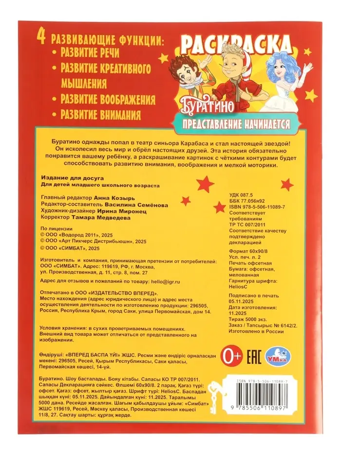 Раскраска «Буратино. Представление начинается», 16 стр.