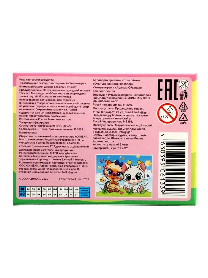 Пазл 54 эл. "Милые котята", 17,5 х 13 см