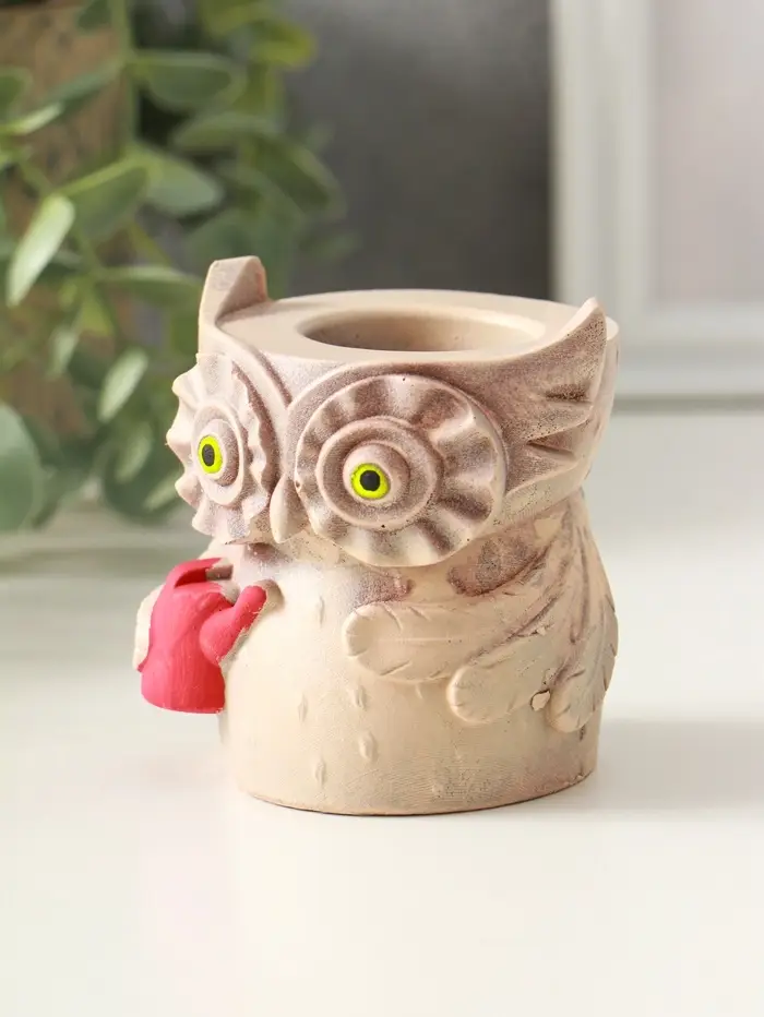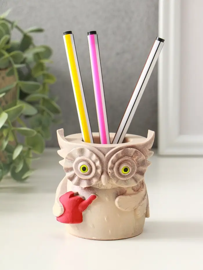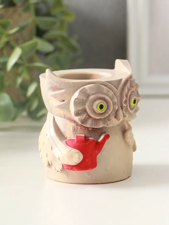 Карандашница "Сова с лейкой", 8х8 см, гипс, слоновая кость