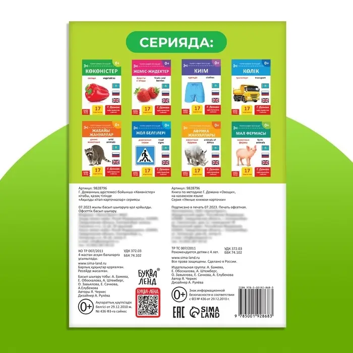 Книга по методике Г. Домана «Овощи», на казахском языке