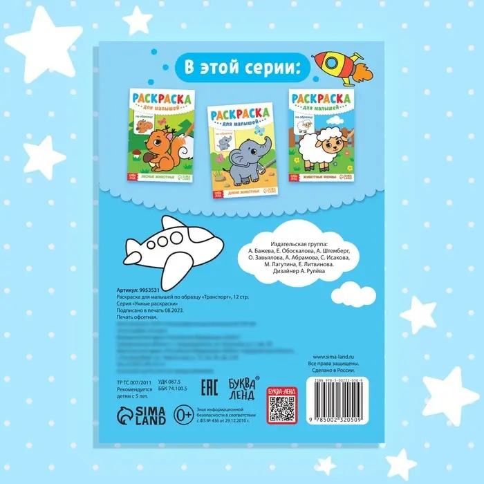Раскраска для малышей «Транспорт», по образцу, А5, 12 стр.