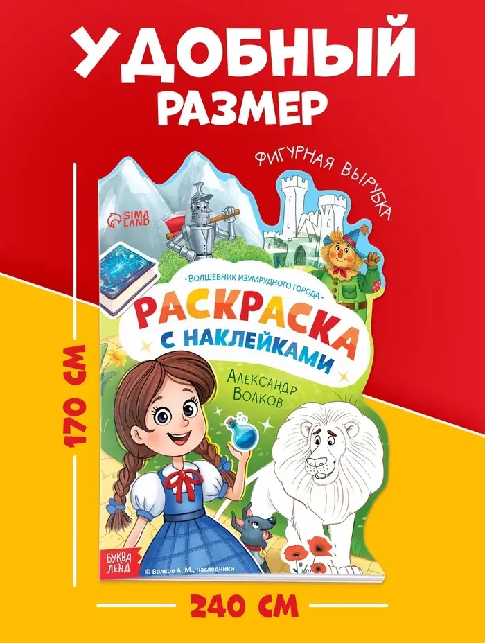 Раскраска с наклейками "Волшебник изумрудного города", 12 стр., Александр Волков