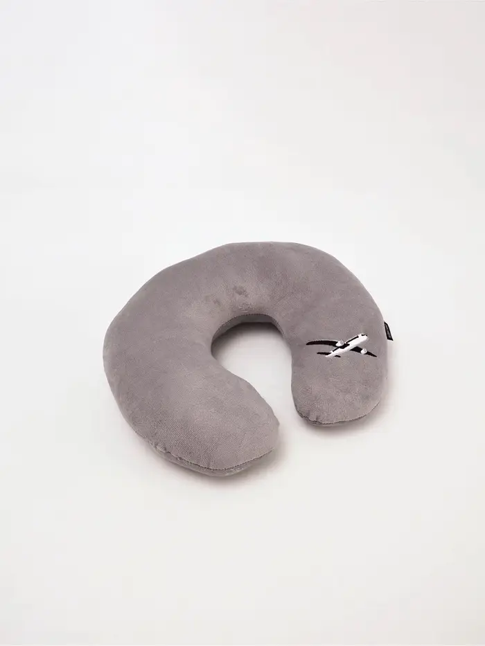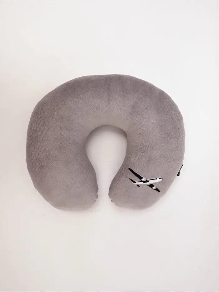 Подушка для путешествий бархатная "Время путешествий", серая, 28 х 30 х 9 см