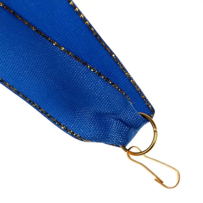 Лента для медали с крепким металлическим карабином золотистого цвета. Также идеально подходит в качестве носителя бейджа, наградной и представительской продукции. Наши ленты для медалей изготовлены из прочной ткани.