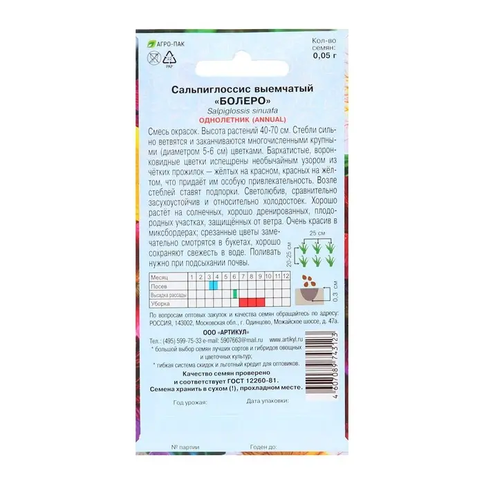 Семена цветов Сальпиглоссис «Болеро», 0.05 г, «Артикул»