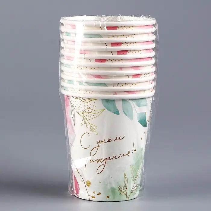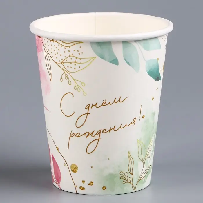 Стакан одноразовый бумажный "С Днём Рождения", цветы, 250 мл