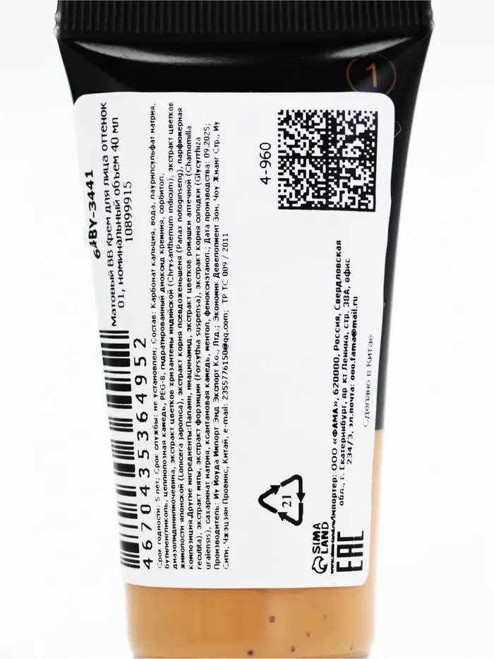 Матовый BB крем для лица оттенок 01, 40 мл (слоновая кость)