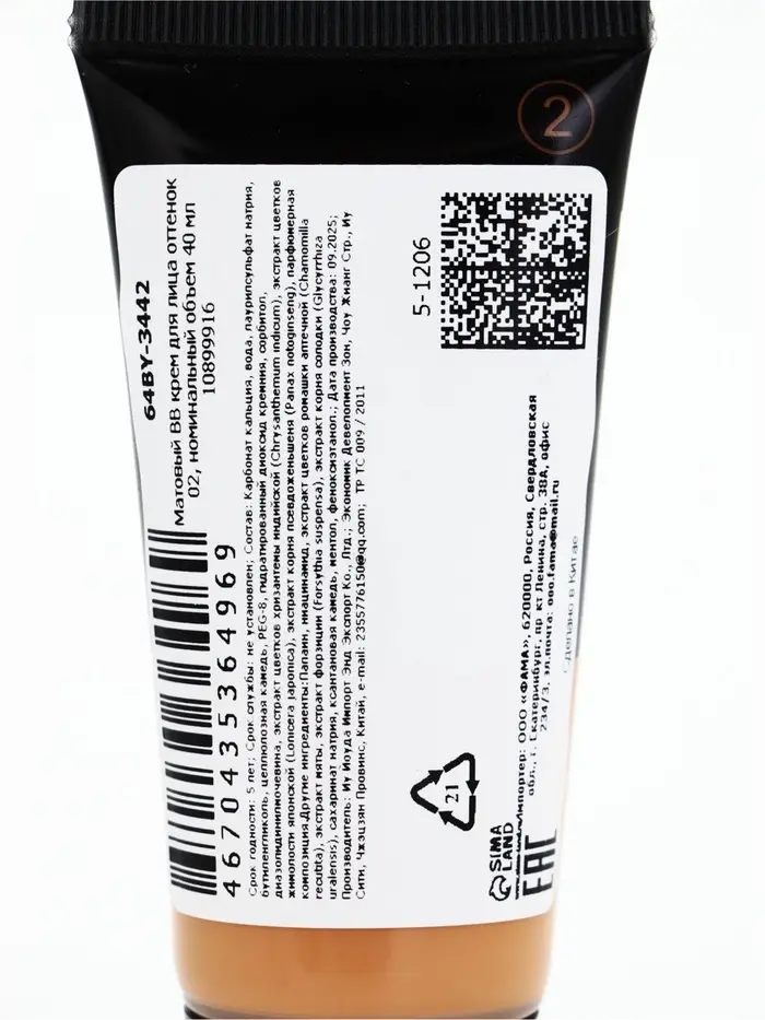 Матовый BB крем для лица оттенок 02, 40 мл (Светлый)