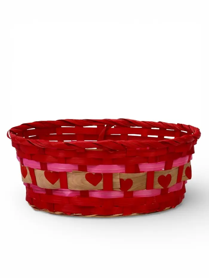 Корзина плетеная 25 х 20 х 10 см, без ручек розовый с сердечками