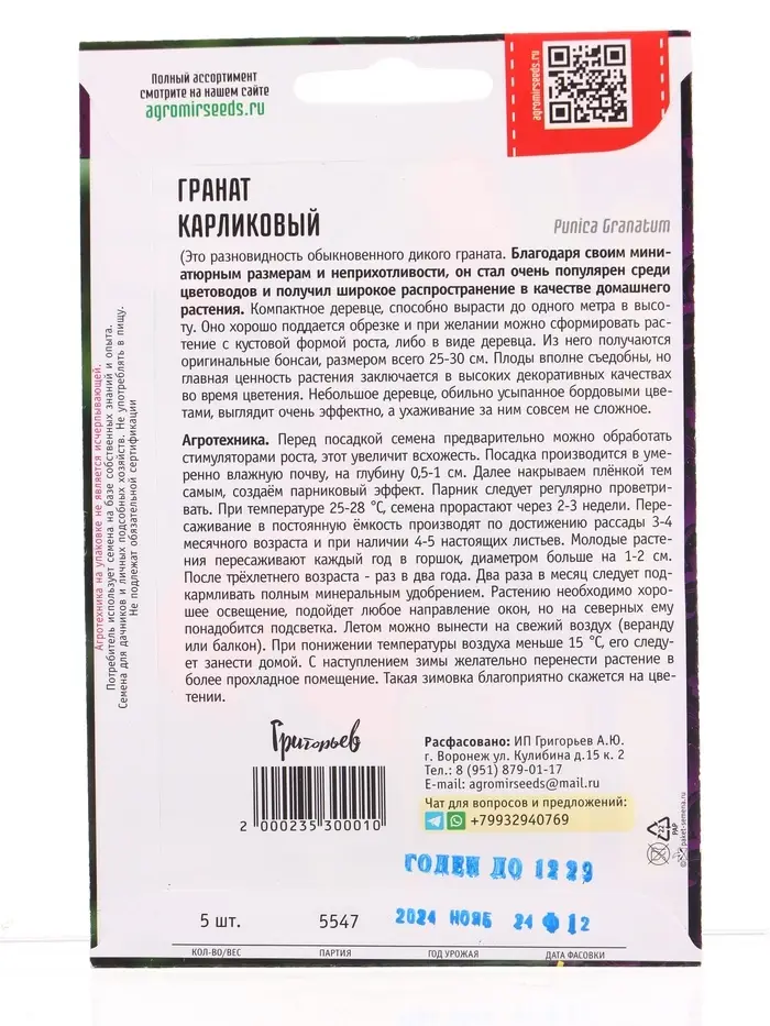 Семена цветов Гранат Карликовый 5шт. 12.29 г.
