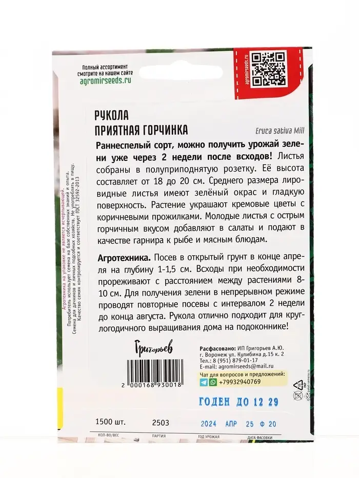 Семена Рукола Приятная Горчинка ВП 1500 шт. 12.29 г.