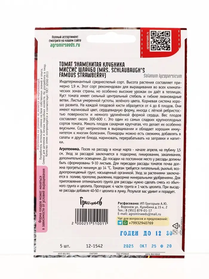 Семена Томат Знаменитая Клубника Миссис Шлаубо (Mrs. Schlaubaugh’s Famous Strawberry) 5шт. / НОВИНКА