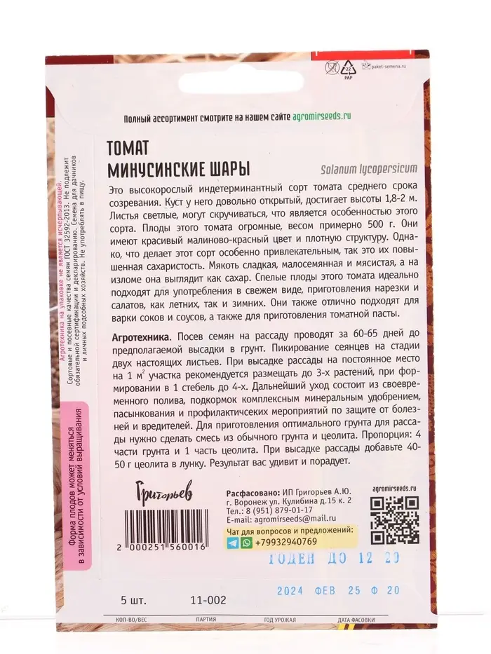 Семена Томат Минусинские Шары 5шт. 12.29 г.
