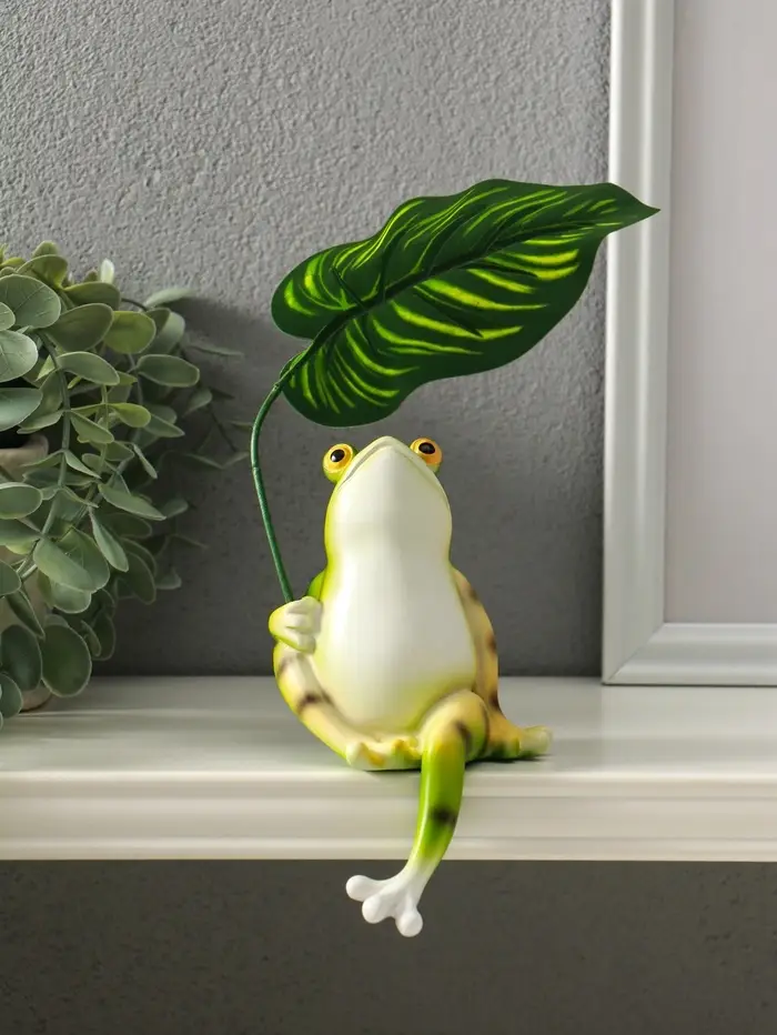 Сувенир полистоун "Лягуха под пальмовым листом" 5,8х7,5х14,5 см