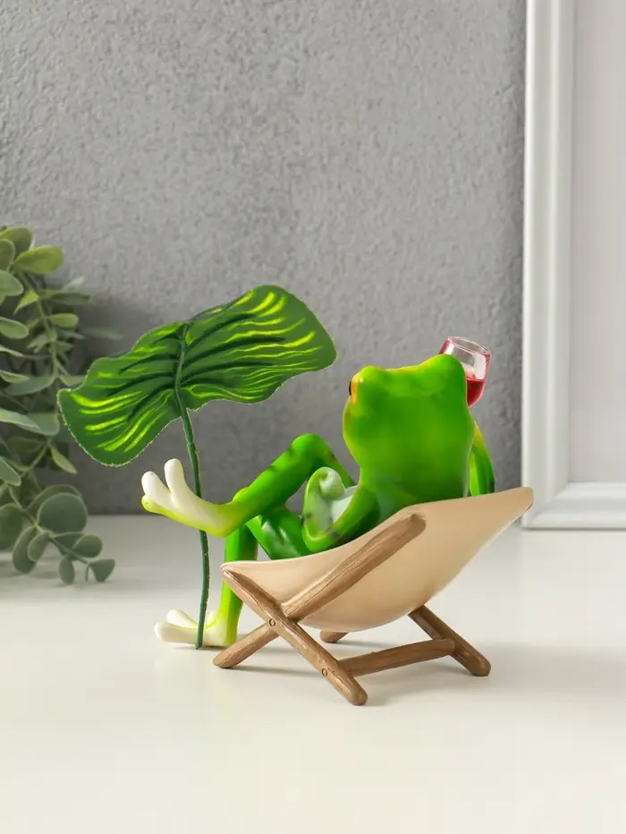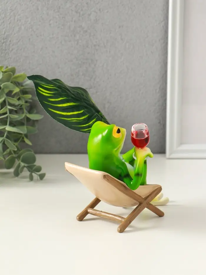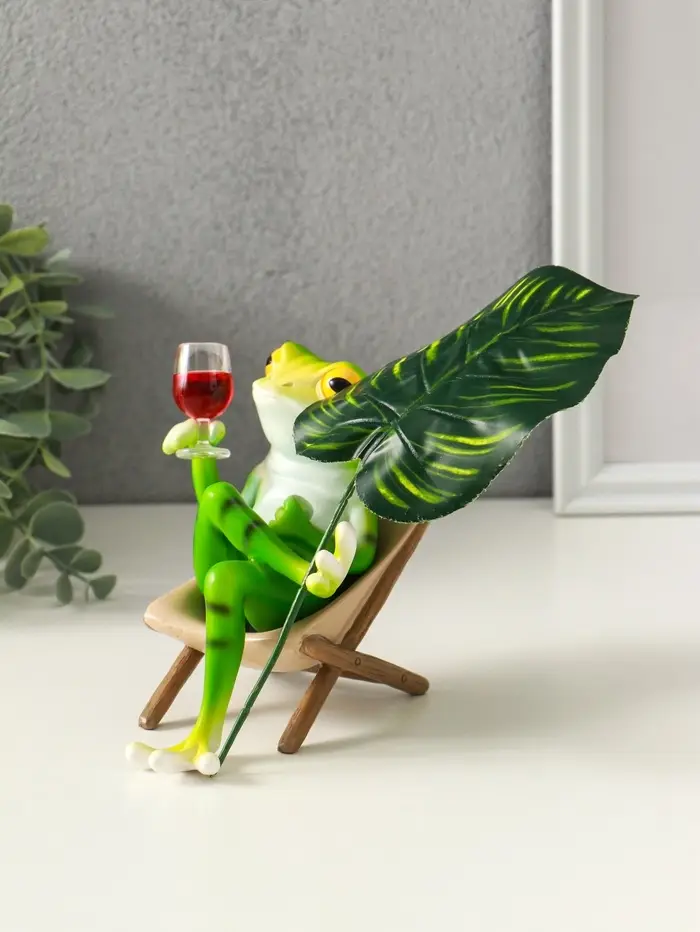 Сувенир полистоун "Лягуха в кресле с бокалом под пальмовым листом" 5,8х7,5х14,5 см
