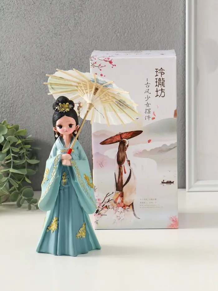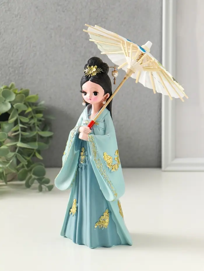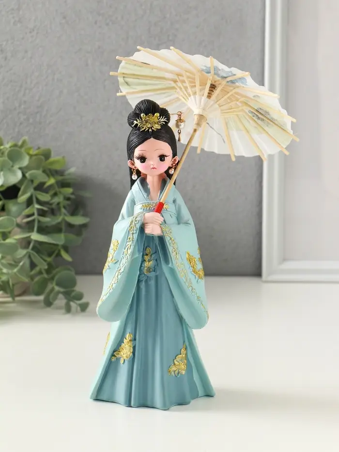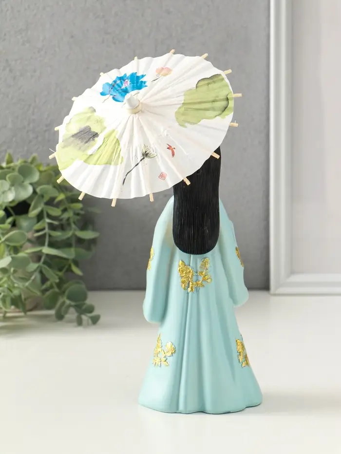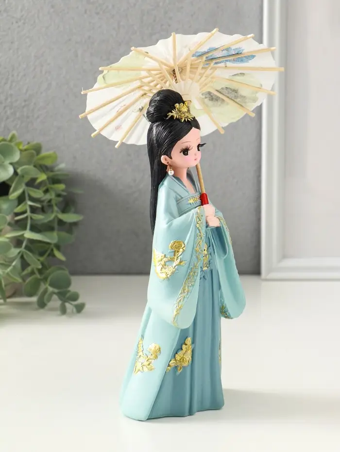 Сувенир полистоун "Девочка в кимоно с зонтиком" голубой 12х13,8х25 см