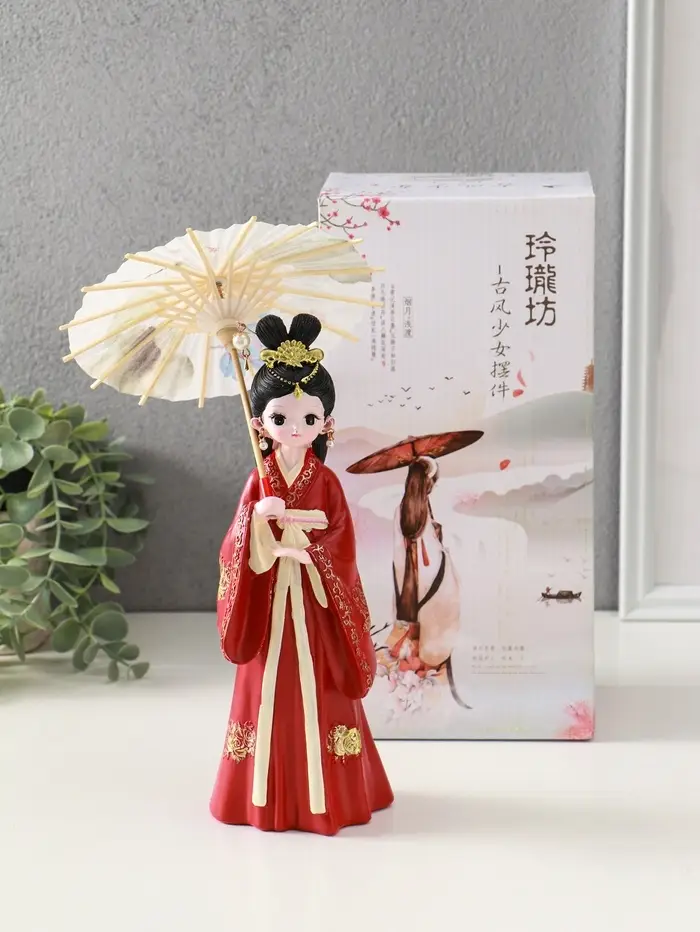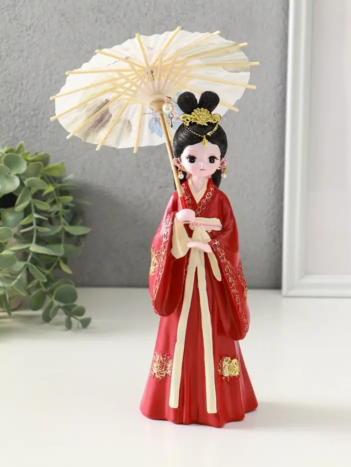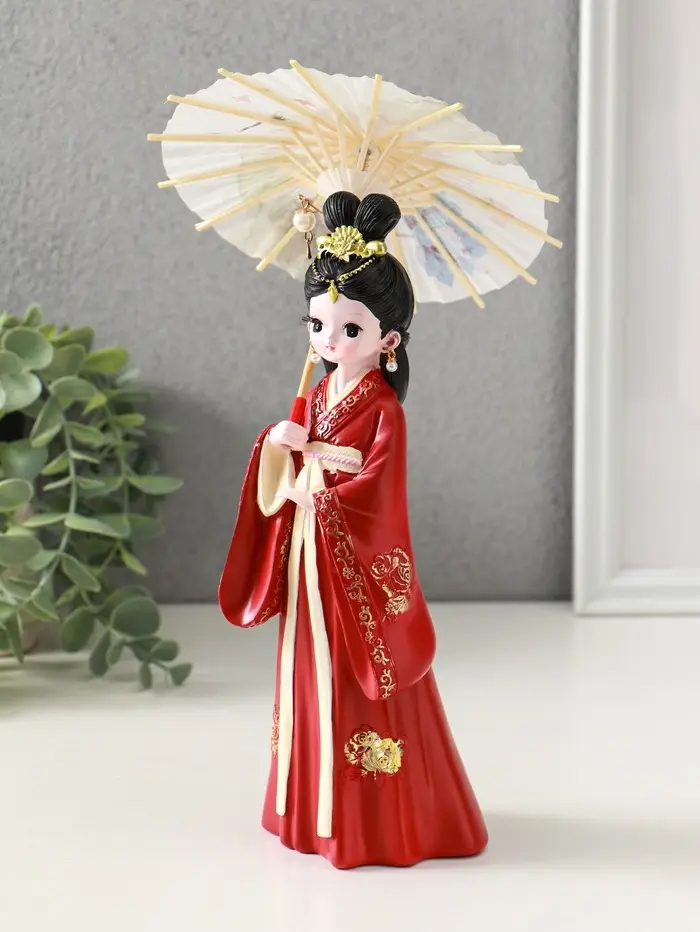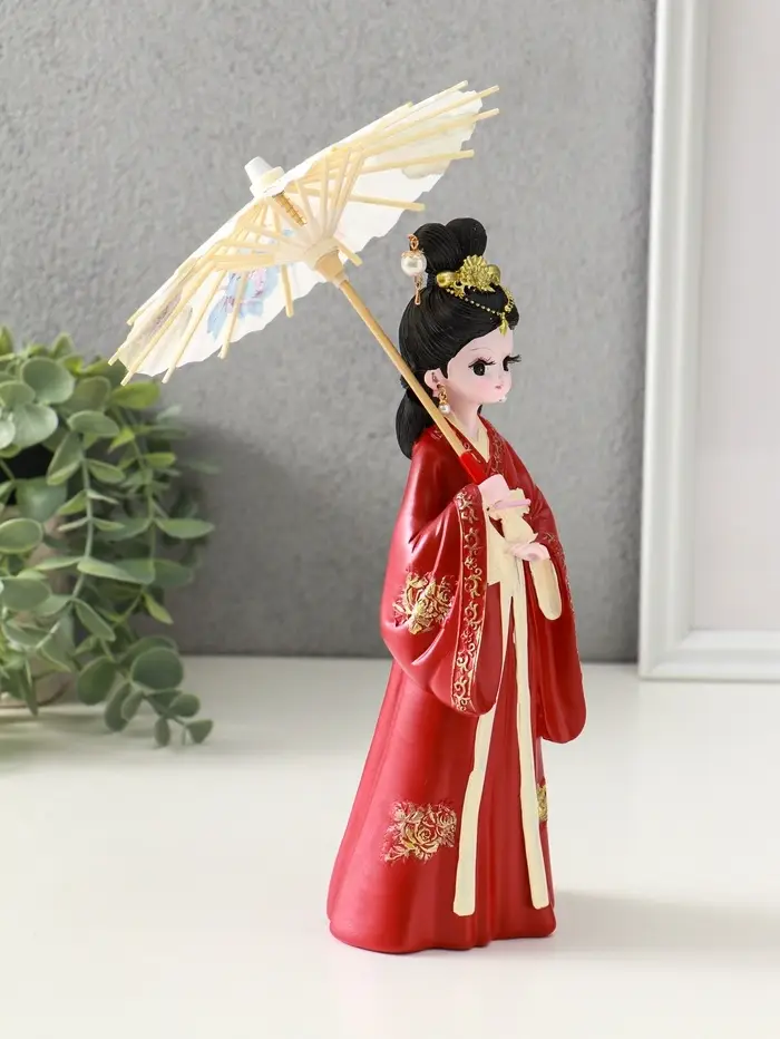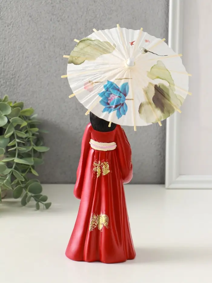 Сувенир полистоун "Девочка в кимоно с зонтиком" красный 12х13,8х25 см