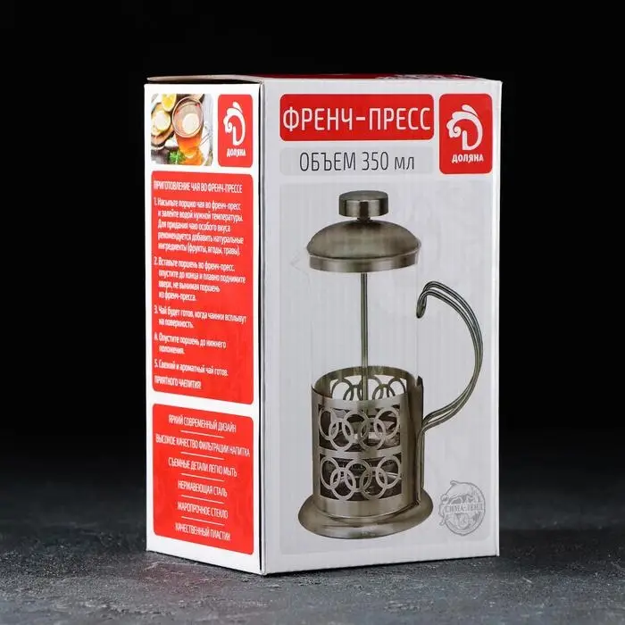 Френч-пресс стеклянный Доляна «Фараон», 350 мл, 13×9×19 см