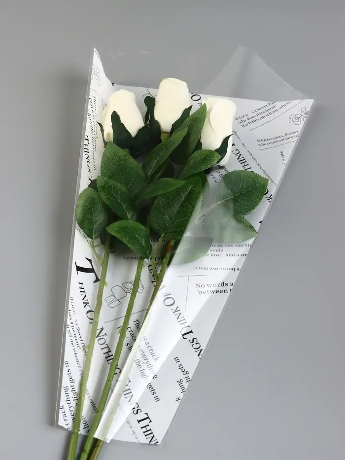 - Прочный материал: Изготовлен из БОПП-пленки. Устойчив к разрывам и защищает букет от повреждений.