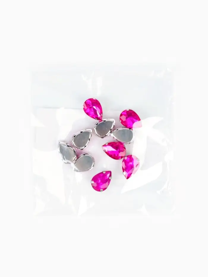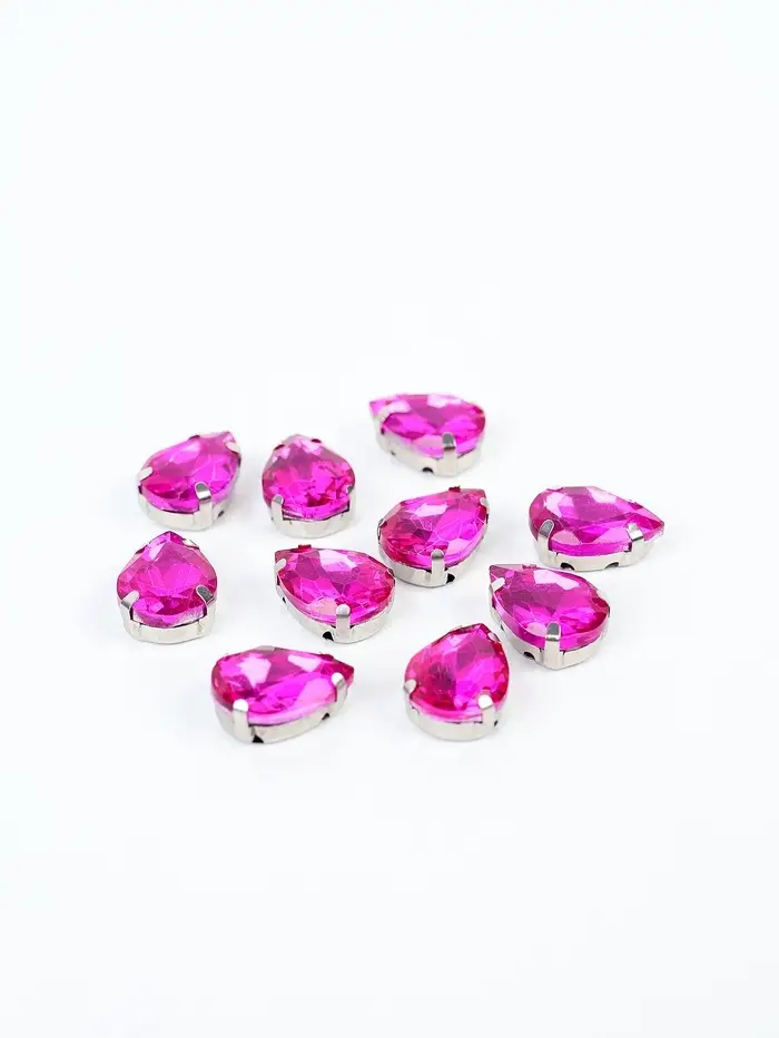 Стразы "Капля", в цапах, 1 х 1,4 см, фуксия