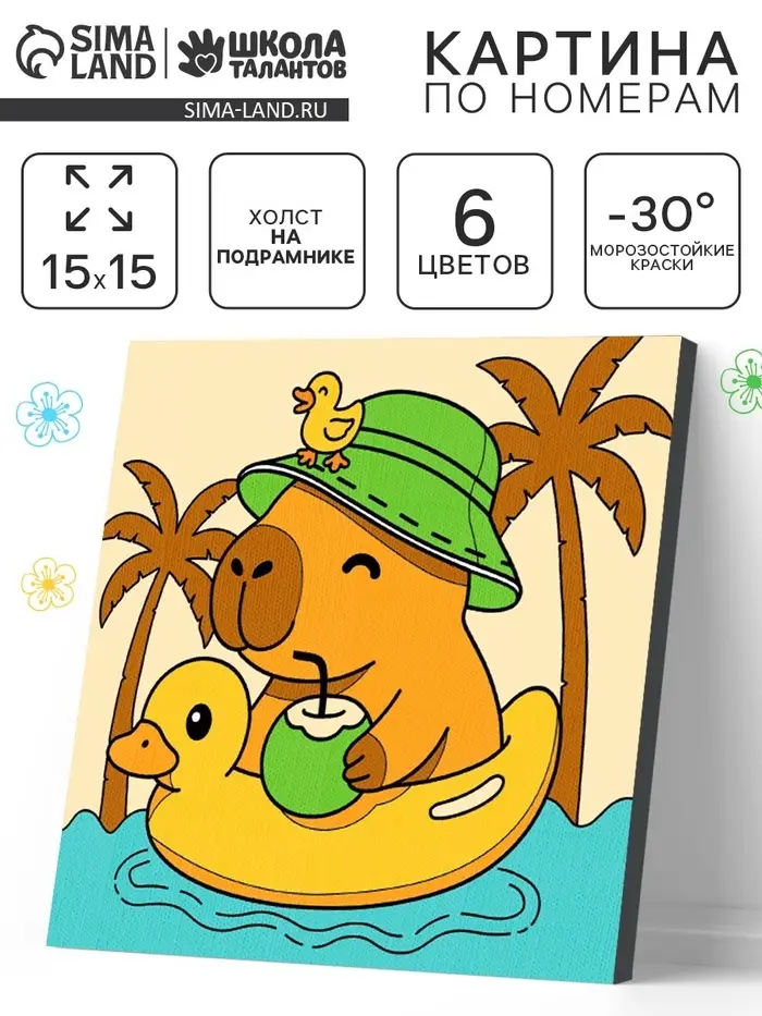 Картина по номерам на холсте с подрамником "Гармония капибары" 15 х 15 см