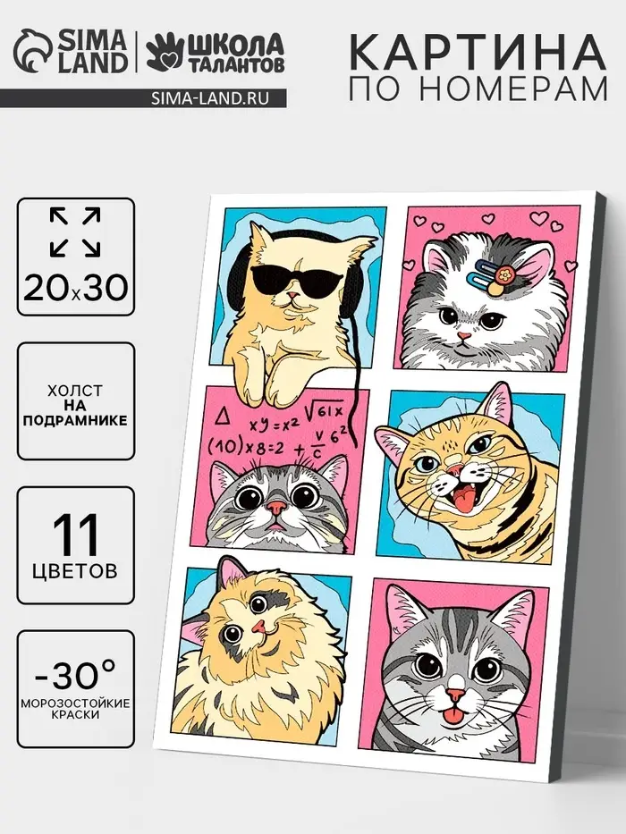 Картина по номерам на холсте с подрамником "Смешные котики" 20 х 30 см