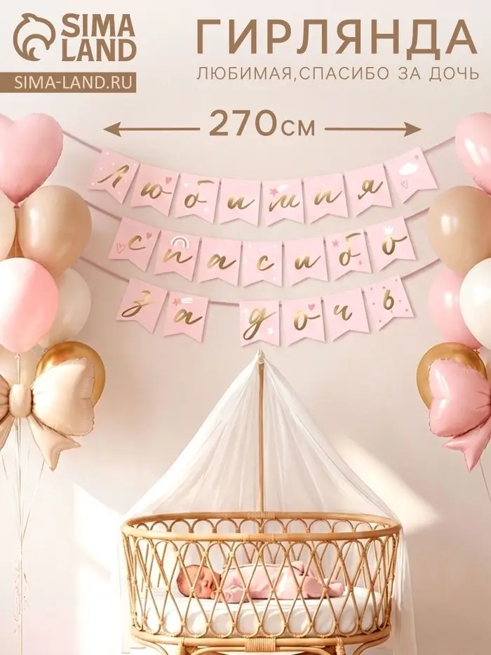 Гирлянда на ленте «Любимая, спасибо за дочь» 270 см, розовая