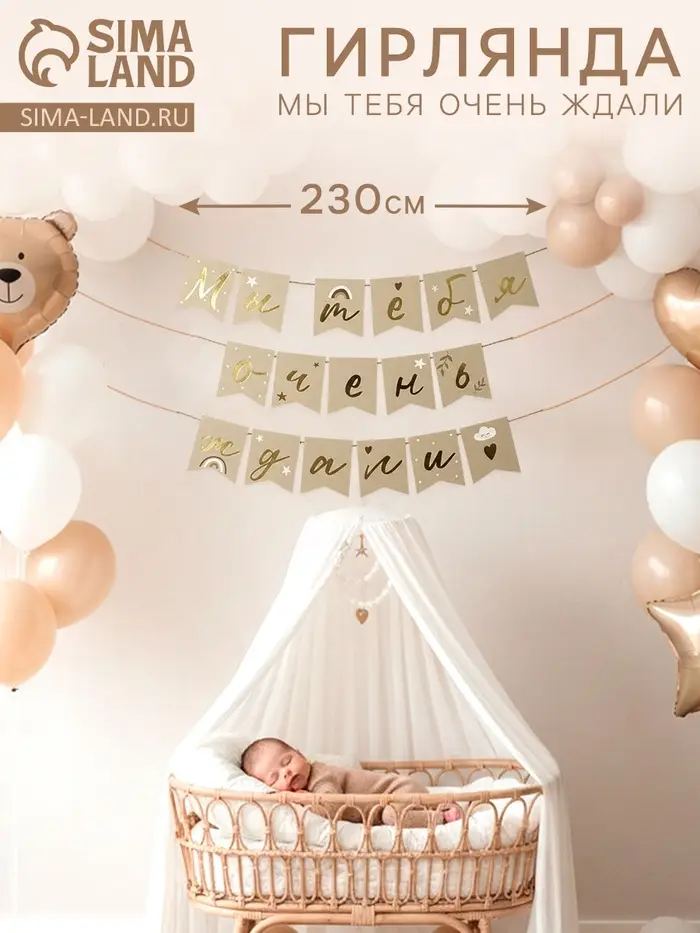Гирлянда на ленте «Мы тебя очень ждали» 230 см, бежевая