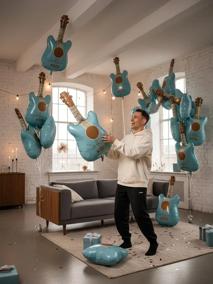 Воздушный шар фольгированный 35" "Гитара" цвет голубой