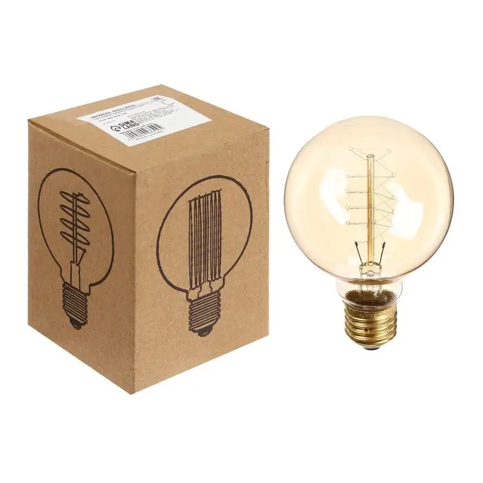 Лампа накаливания винтажная "Шар спираль", G80, 40 Вт, Е27, 230 В, 120х80 мм, теплый белый