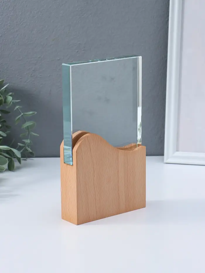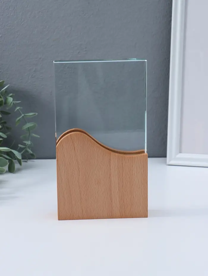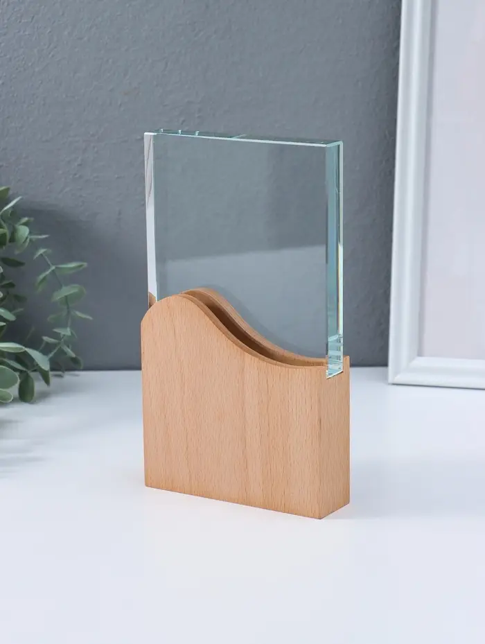 Стела наградная стекло, дерево "Волна" верх 12,3х12,2 см низ 12,3х12 см 3,5х12х21,3 см