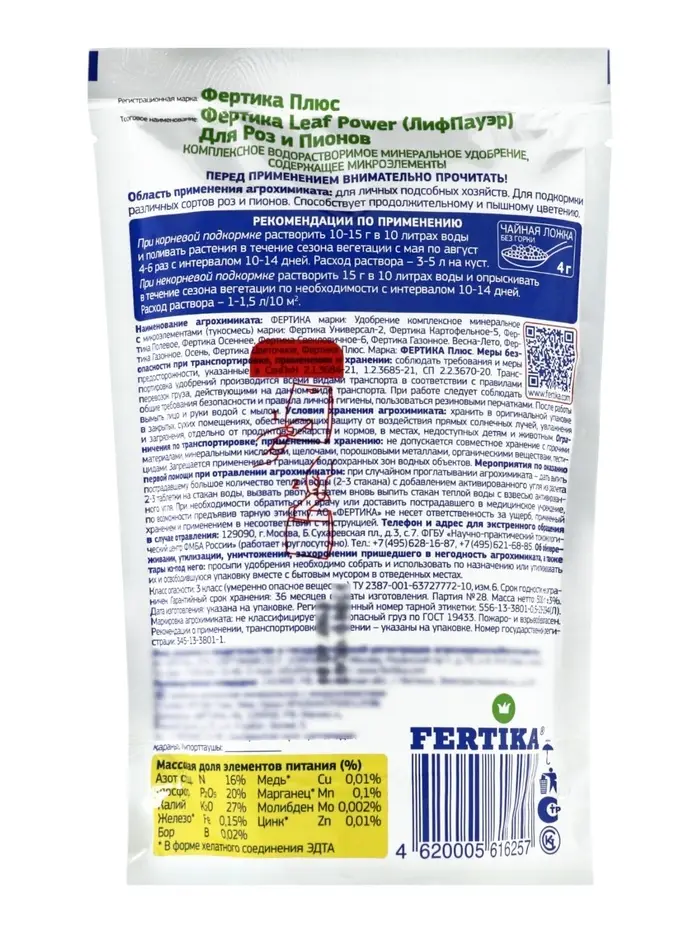 Leaf Power ДЛЯ РОЗ И ПИОНОВ Дой-Пак 0,5 кг