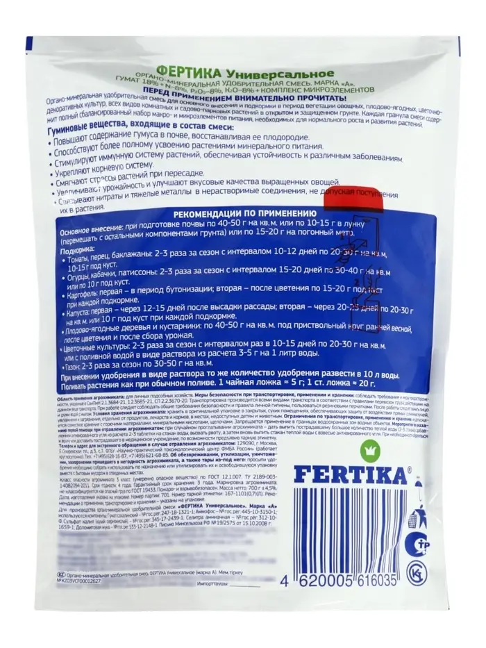 Органо-минеральная удобрительная смесь. Универсальное (NPK 8:8:8 + микроэлементы) Дой-Пак 0,7 кг 109