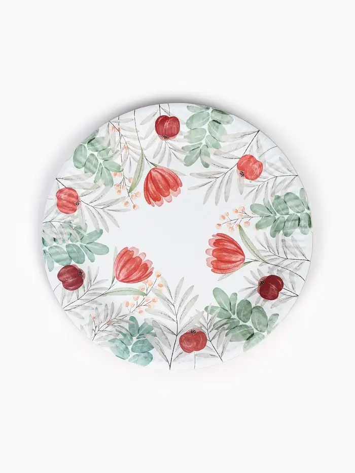 Тарелка одноразовая бумажная «Красные цветы», 23 см