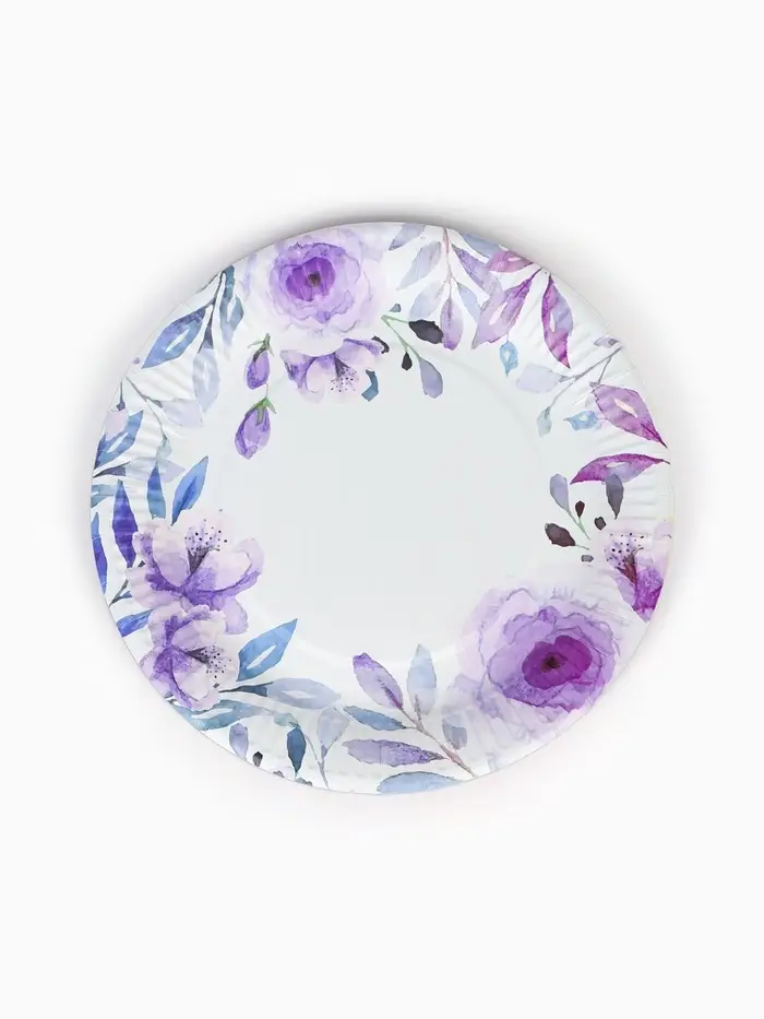 Тарелка одноразовая бумажная «Сиреневые розы», 23 см
