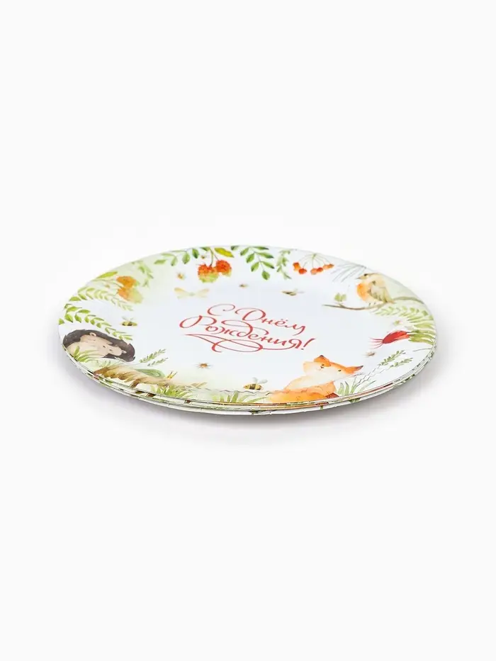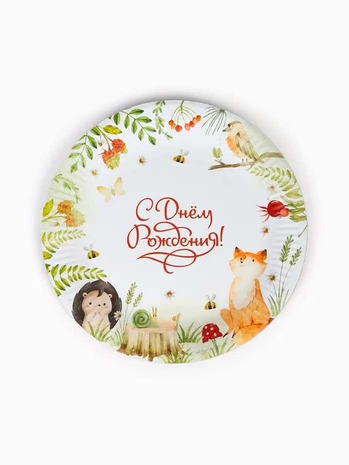 Тарелка одноразовая бумажная «С днём рождения», звери, 23 см
