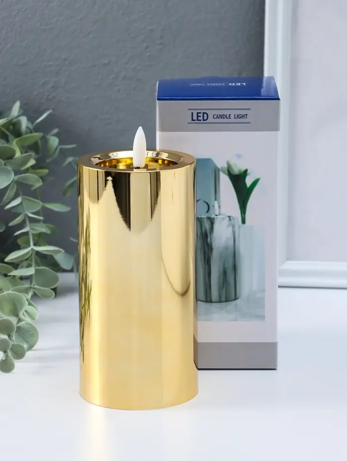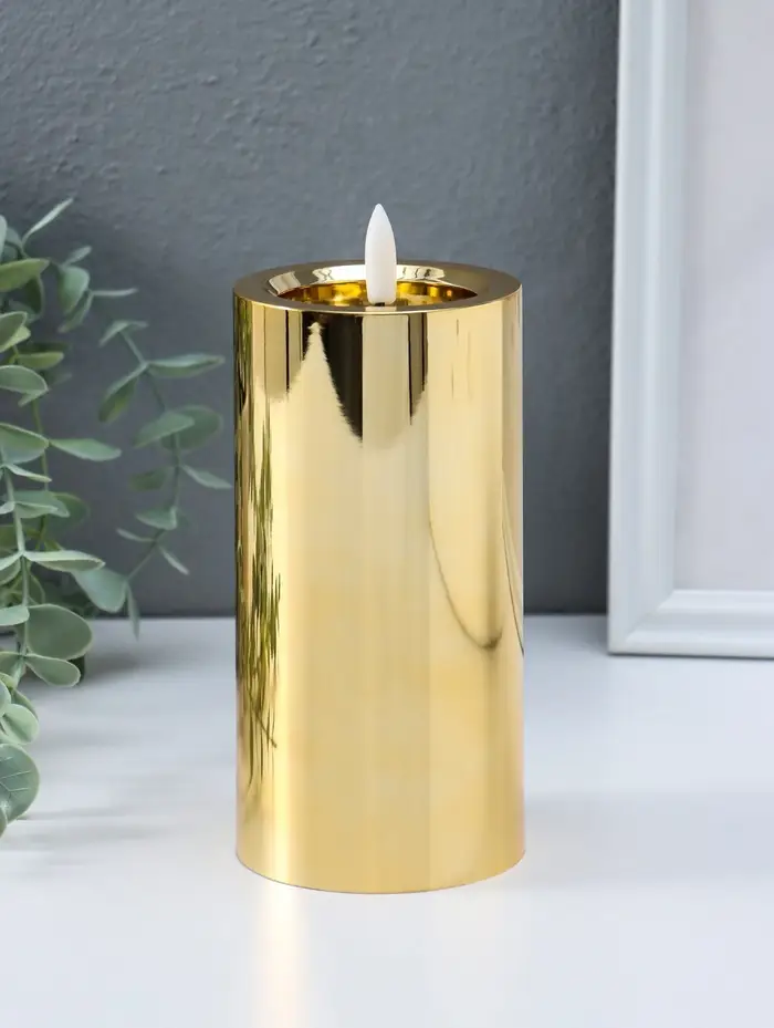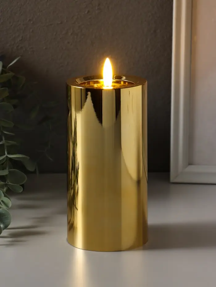 Светодиодная свеча LED "Столбик. Глянец" от батареек 3хАА, золото, мерцающая 7,5х7,5х12 см