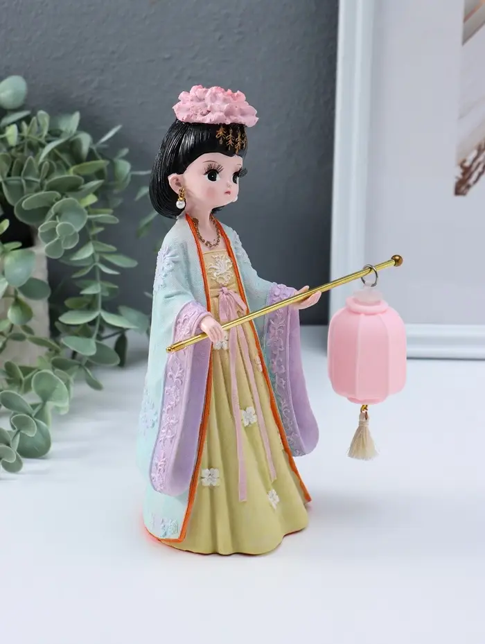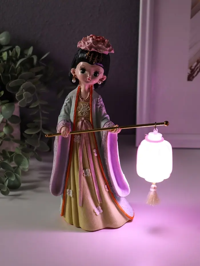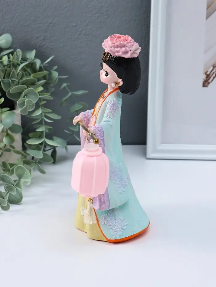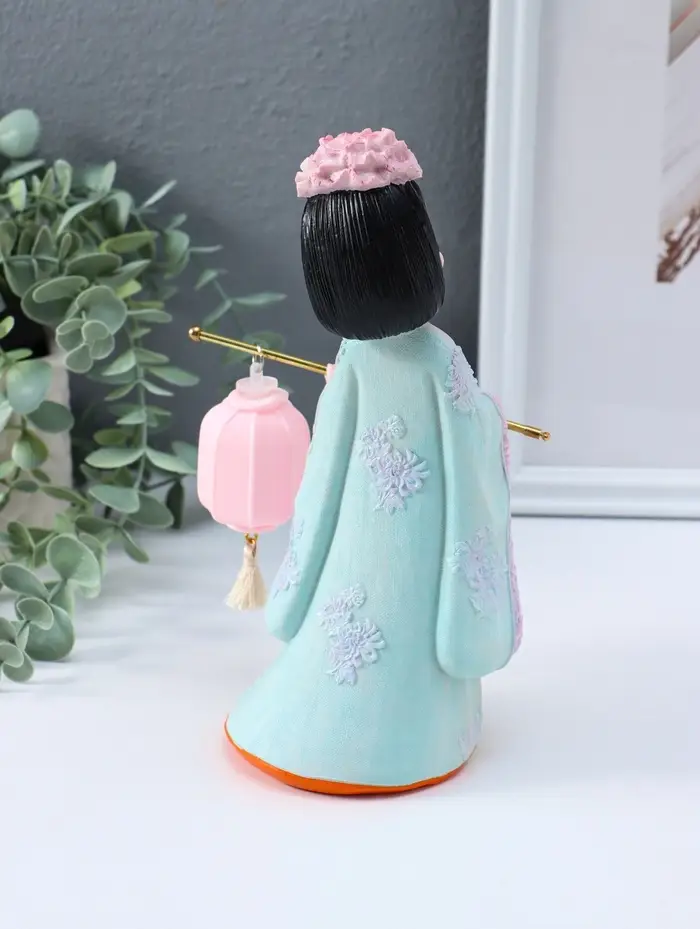 Сувенир полистоун свет "Девочка в кимоно с фонариком" розово-зеленый 3хAG3 7,8х12,5х20,5 см 109567