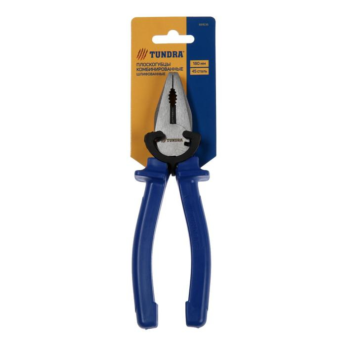 Плоскогубцы комбинированные ТУНДРА, CrV, шлифованные, пластиковые рукоятки, 180 мм