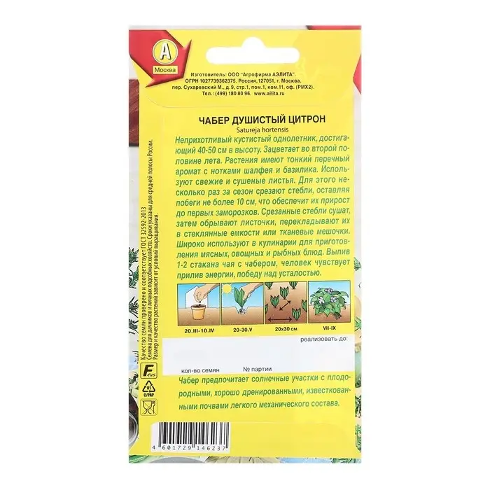 Семена Чабер душистый Цитрон Целебный чай Ц/П 0,1г
