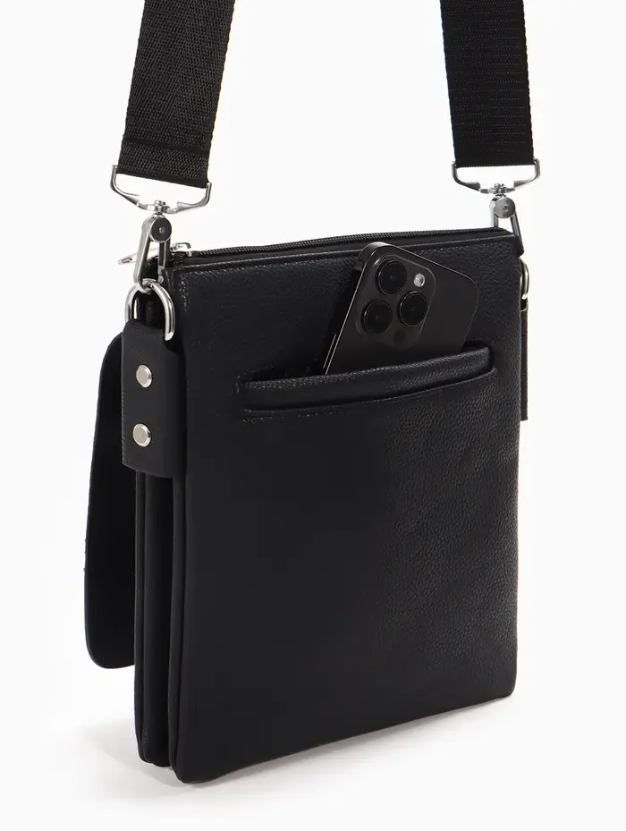 Сумка планшет муж, 19*2*23, 2 отд на молнии, н/карм, длин рег ремень, черный