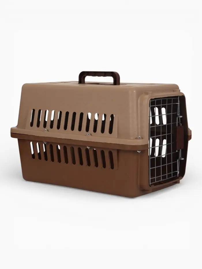 Переноска для животных с металлической дверью 49 х 31 х 31 см,серо-кофейная