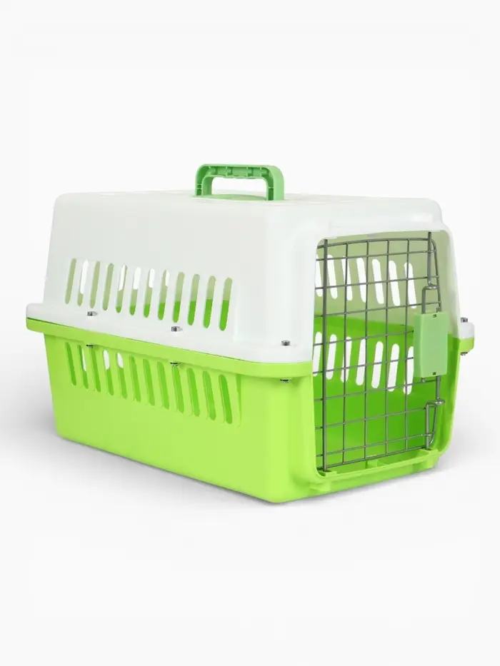 Переноска для животных с металлической дверью 49 х 31 х 31 см, бело-зелёная