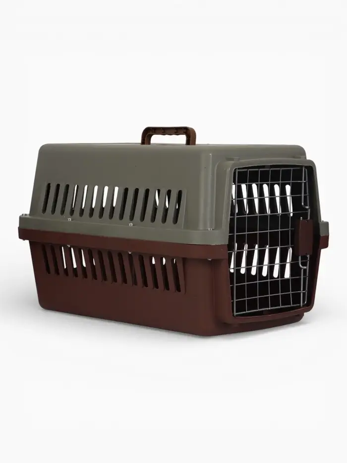 Переноска для животных с металлической дверью 59 x 36 x 35 см,серо-кофейная (+поддон решотко 10807