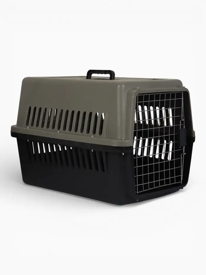 Переноска для животных пластиковая с металлической дверью 64×45×45 см, серая
