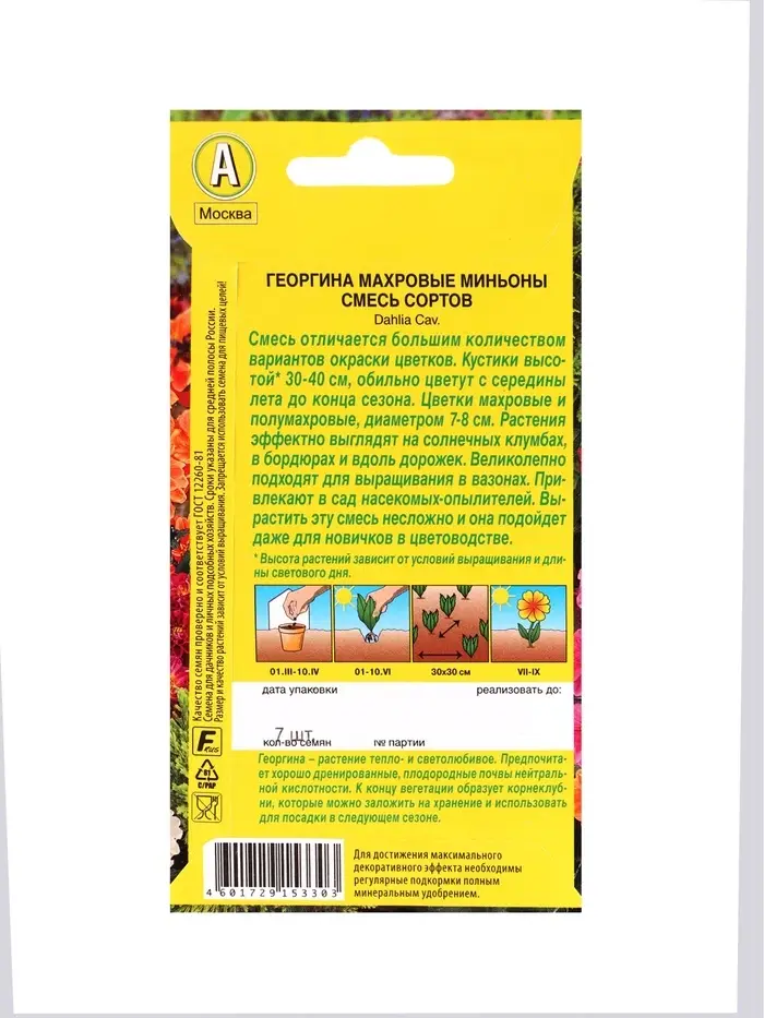 Набор Семена цветов Георгины махровая низкорослая (238760048) ВБ