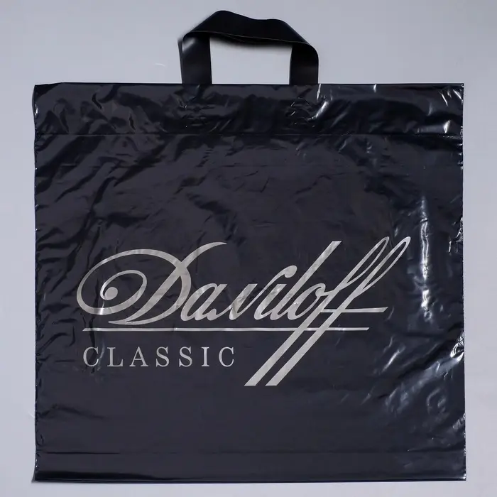 Пакет полиэтиленовый с петлевой ручкой, прочный с оригинальным рисунком.