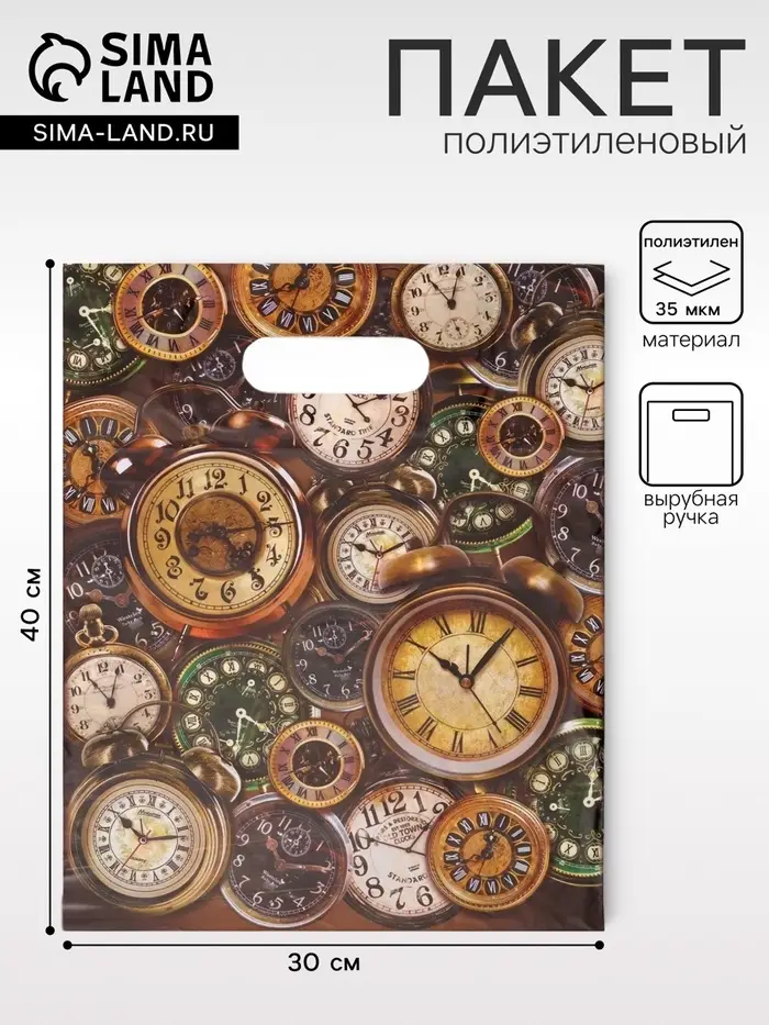 Пакет «Часы» полиэтиленовый с вырубной ручкой, 35 мкм, 30×40 см