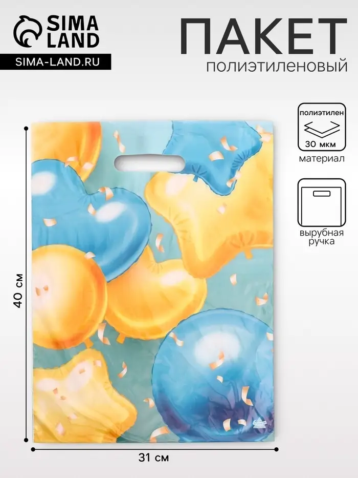 Воздушное настроение в каждой детали. Яркий полиэтиленовый пакет с рисунком «Шарики» — это лёгкая и праздничная упаковка, которая сама создаёт атмосферу веселья. Его дизайн с разноцветными шарами сразу настраивает на позитивный лад и подходит для подарка на любой праздник.